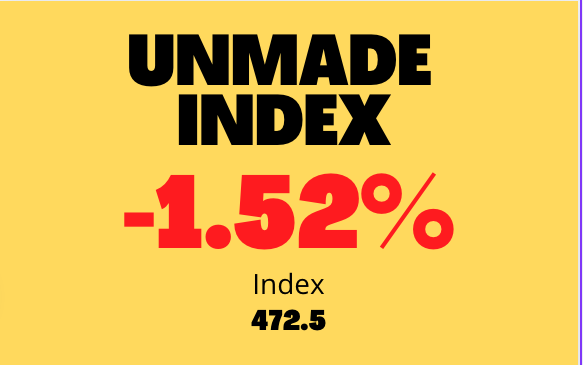 The Unmade Index closed on 472.5 points, down 0.42% for the day.