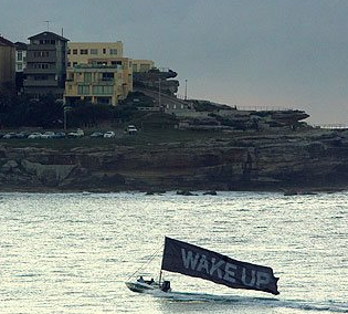 The hostel’s proprietor, Christian Millett, also noted that activity on the hostel’s Facebook page has increased, with pictures of the Wake up stunts – including a boat towing a banner and the words ‘Wake up’ written on Bondi Ice Bergs swimming pool – posted to the page.