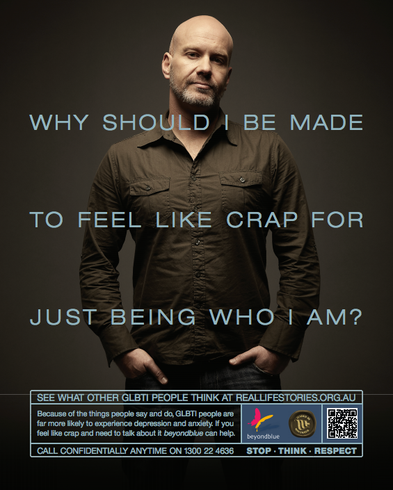 The campaign is also running across 11 gay and lesbian magazines, 12 websites and mobile apps nationally. The element of the campaign targeting the gay community encourages people experiencing anxiety or depression to contact Beyondblue for help.