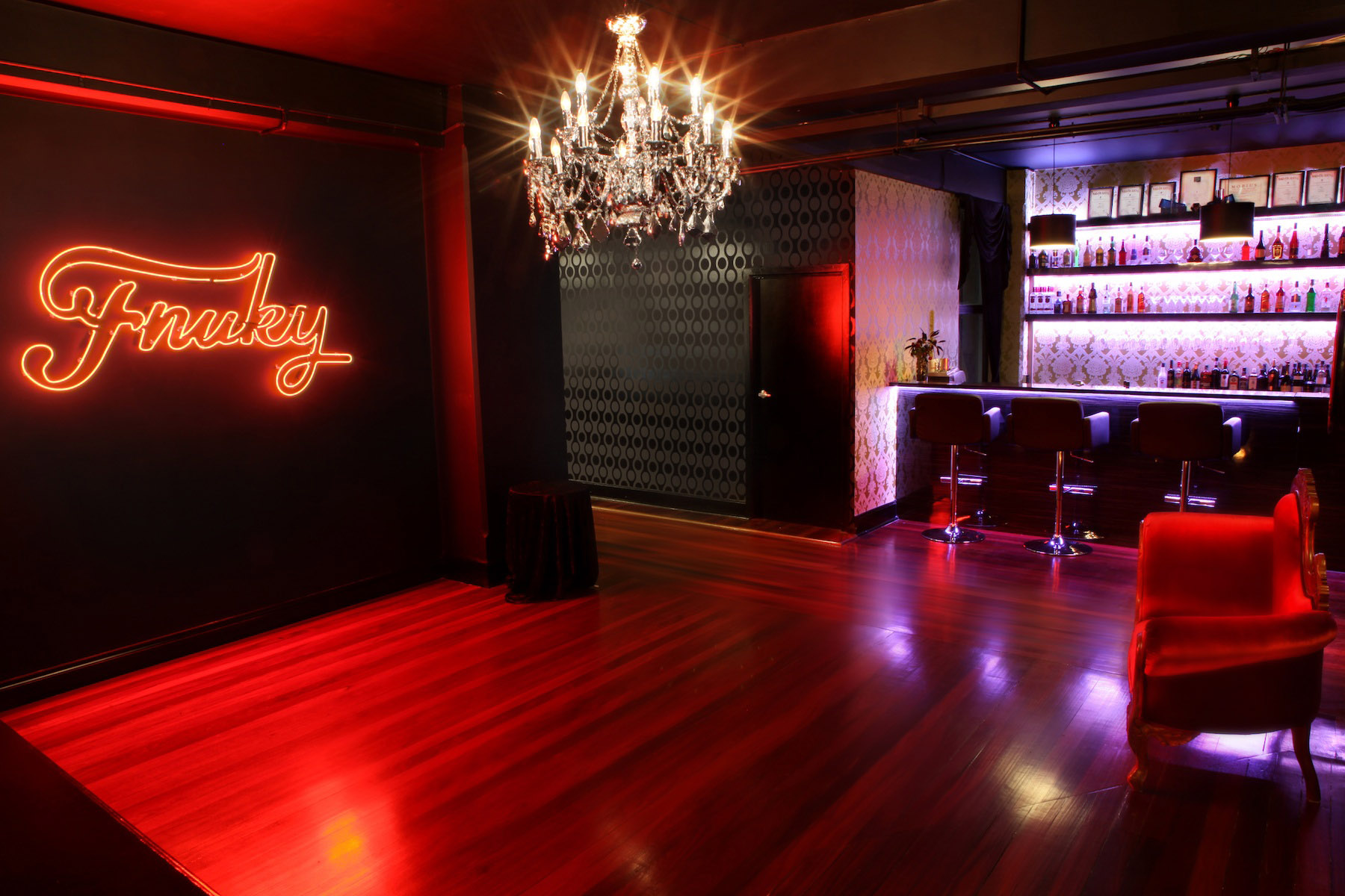The lobby is kitted out like a Burlesque night club. There’s a back-lit bar, porn red neon, a chaise longue and a gleaming polished mahogany floor. Stunning.