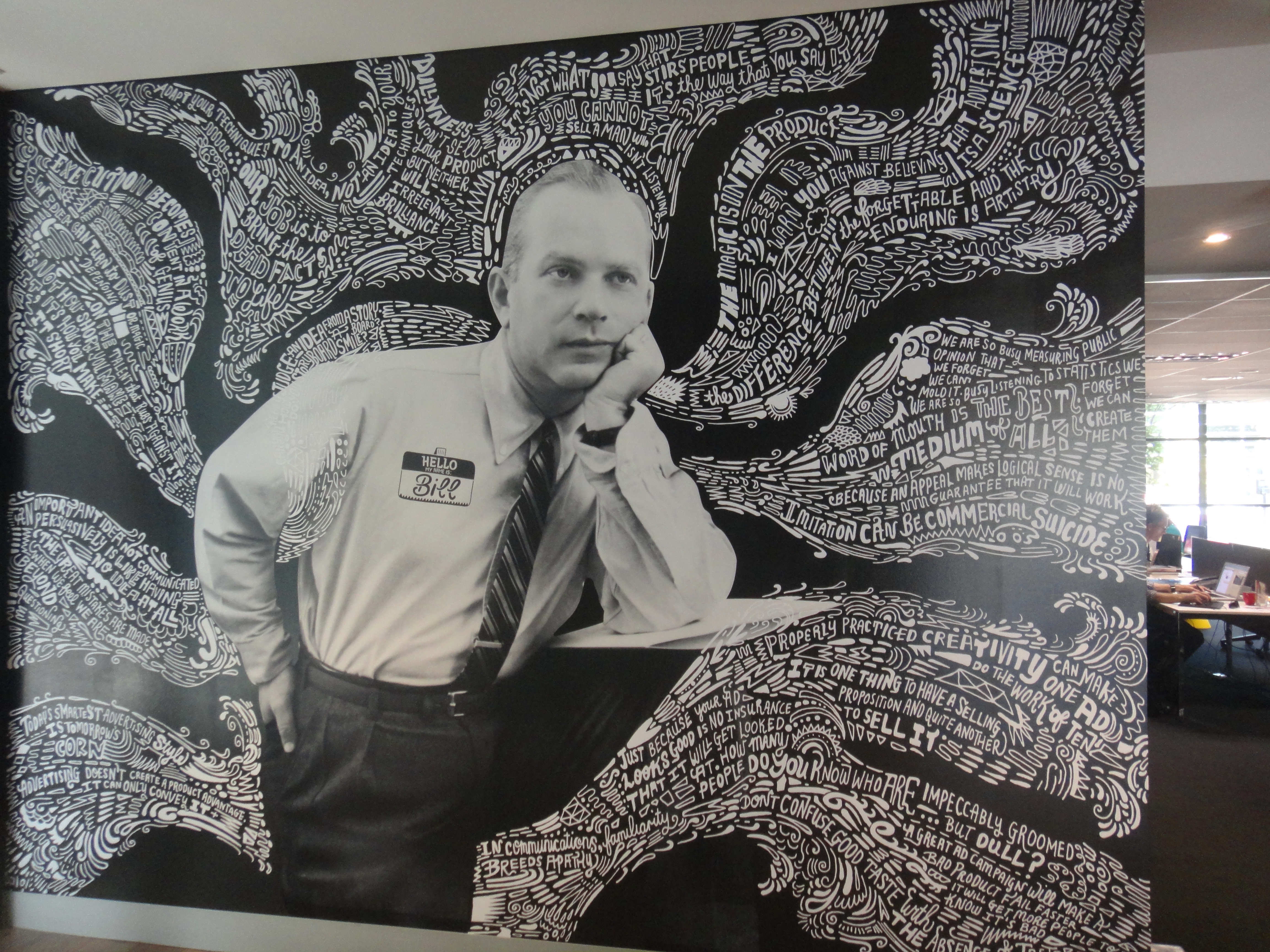 DDB’s lobby looks like pretty much any other. Except for an entire wall dedicated to the wisdom of the agency’s founder Bill Bernbach. Though much of what is written on the wall reads like a book of advertising proverbs (“Properly practised creativity can make one ad do the work of ten”, etc), there are a few things worth your time reading while you wait.