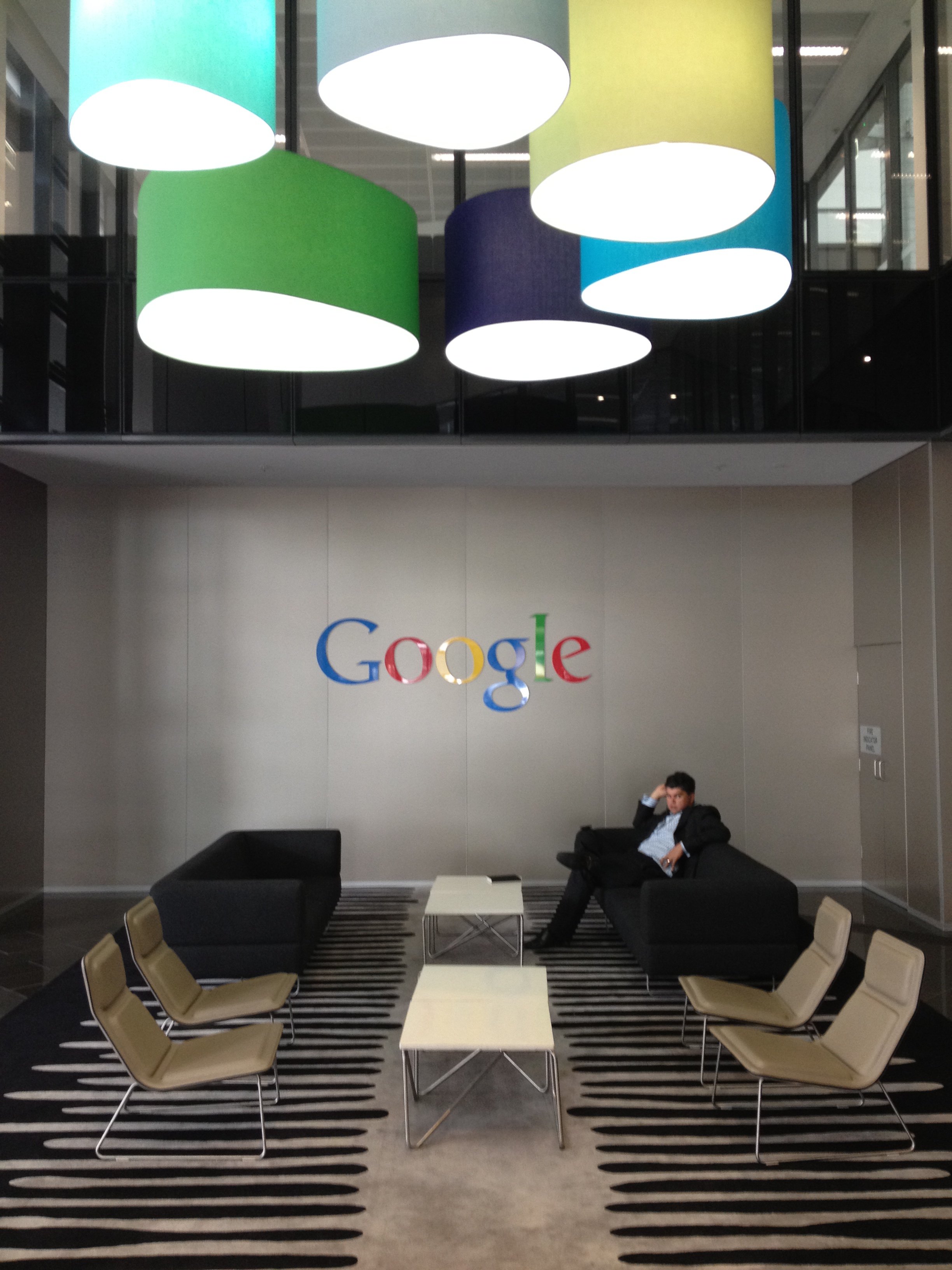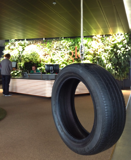 The entrance lobby is fairly standard for a big corporate (600 people work here). Company logo on the wall and a slightly sterile, airport-like feel about the seating area. Not the zany welcome you’d expect from Google. It’s when you go upstairs to reception that things get interesting. A gardener comes once a week to water the Google jungle