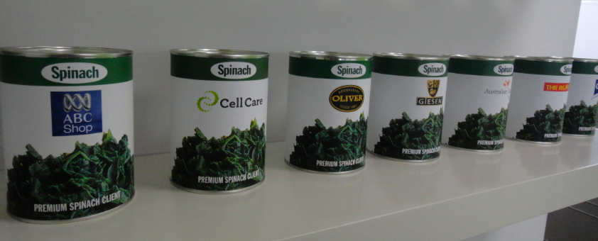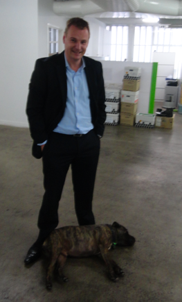 She had observed that spinach gives you strength, and the same thing could be said of advertising for a client. Hence the names of clients on the side of Spinach cans in the lobby. Cute. As is the super-friendly office dog, seen here taking a well earned rest on the feet of Ben Willee, who joined the agency at the end of last year.