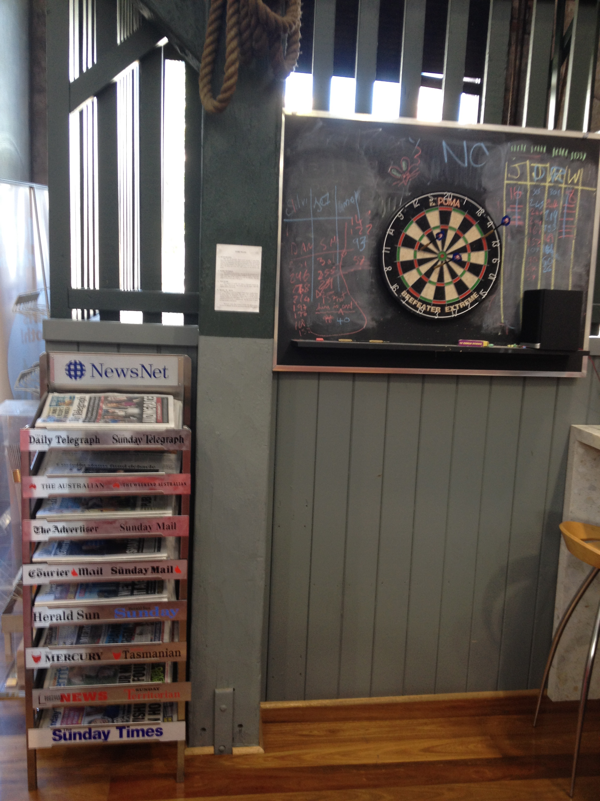 What used to be a Voodoo coffee shop has the dingy air of a cave. Stagnant air is refreshed with gusts of juggernaut fumes when the front door opens. The carpet tiles move. We have a cupboard full of DVDs you wouldn’t give away, piles of magazines, overflowing rubbish bins, a (fake) bloodied baseball bat and an evil back door that slams terrifyingly and locks you in.